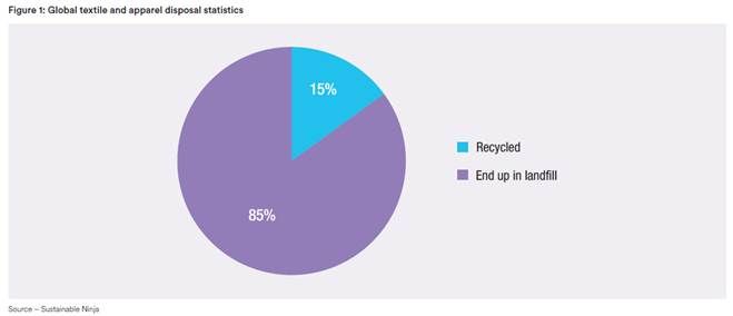 If we consider the global condition of the clothes that are discarded, only 15 per cent are collected for recycling, and from that, only 1 per cent is recycled into new clothing. Global textile consumption will increase by around 120 million tonnes by the year 2030 if we continue to adopt the lifestyle of fast fashion. Figure 1 shows the condition of the clothing which is discarded. The current scenario gives a grim picture of the global textile and fashion industry in terms of recycling.