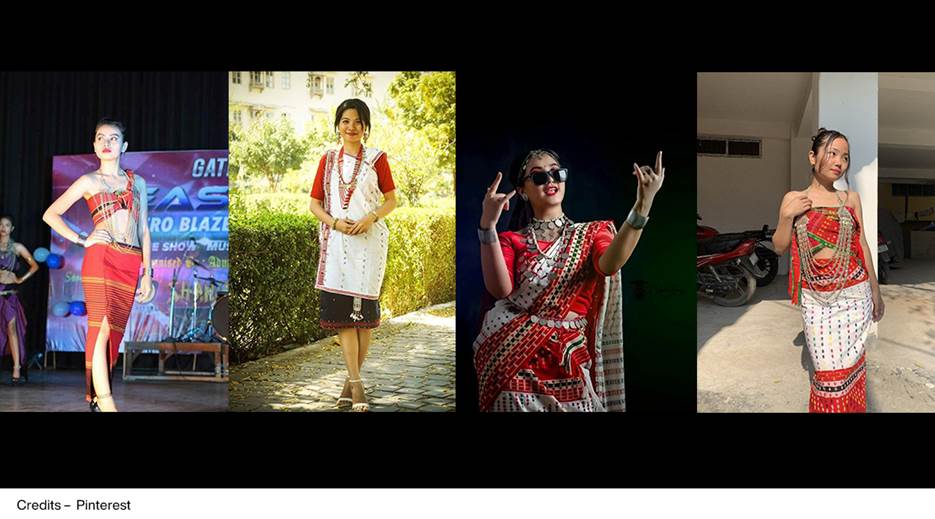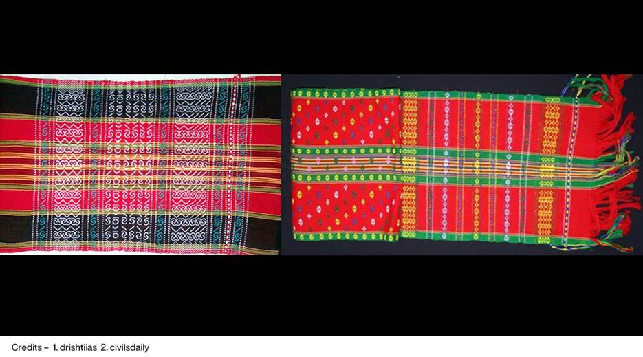 Risa, the traditional heartbeat of Tripura’s vibrant culture, is worn by both men and women alike. For women, it’s part of a stylish duo. The Risa covers the chest, while the Rikutu wraps the upper body, and the colourful Rignai or Rigwani graces the lower half. Each Tripuri clan boasts its own unique Rignai pattern, making it not just a fashion statement but a proud badge of identity.