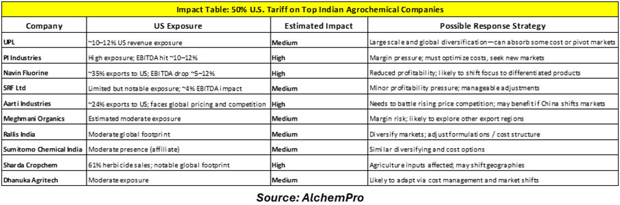 Possible Impact on Top Agrochemical players in India based on their US Exposure