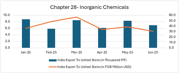 AlchemPro presents a detailed analysis on chapter-wise chemical exports from India to the United States for the period January to June 2025. As one of India’s largest trading partners, the United States continues to play a pivotal role in shaping India's external trade dynamics. Understanding the composition, trends, and performance of export sectors during this period provides valuable insights into the evolving trade relationship, sectoral competitiveness, and emerging market opportunities.