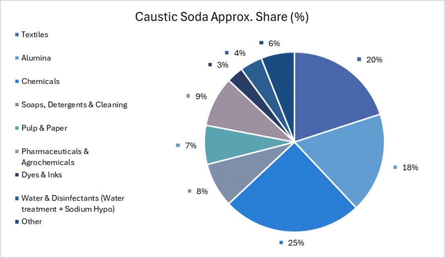 - The Aluminium Industry: Alumina refining requires large quantities of caustic soda.