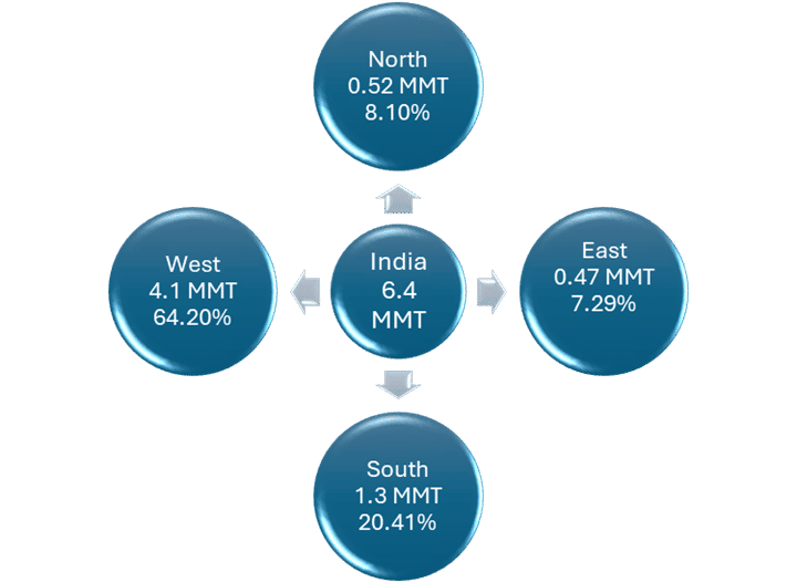 The Caustic Soda industry in India is regionally skewed, with West Zone being the production hub due to industrial clustering and raw material availability.