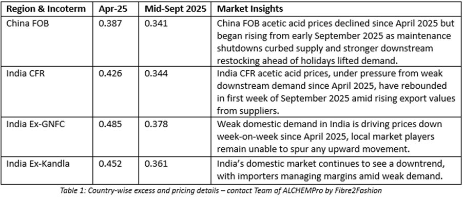 - India: CFR imports are becoming attractive as freight relief in Aug-25 first and competitive Chinese offers give importers stronger margins, despite domestic firmness and slight surge in freight in first half of September 2025.
