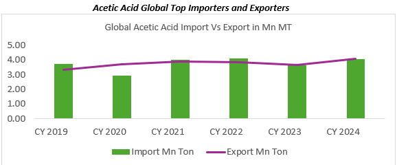 - The top five importers of acetic acid in Q1 2025 were India, Belgium, Japan, Turkey and Brazil. India remains the largest importer, highlighting its growing downstream chemical and textile industries.