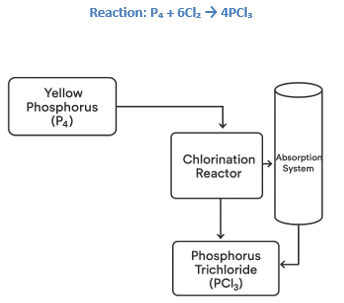 Upstream: The production of PCl₃ depends primarily on elemental yellow phosphorus (P₄) and chlorine gas (Cl₂), both energy-intensive inputs.