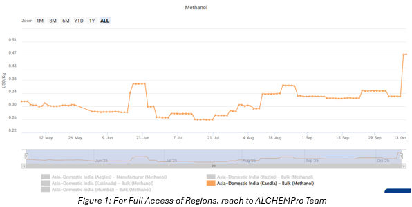 India’s domestic methanol and derivative markets have consequently entered a cautious holding pattern. Due to sanction on Iranian material, Importers and downstream processors are exhibiting restraint in contracting new cargoes until greater clarity emerges regarding both international compliance risks and future price trajectories. The hesitation is amplified by the potential ripple effect on derivative industries including formaldehyde, acetic acid, dimethyl ether (DME), and olefins where elevated feedstock costs could compress margins and weaken competitiveness in both domestic and export-oriented applications.