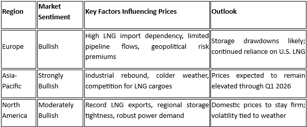 The region’s seasonal demand surge is expected to peak between December 2025 and February 2026, coinciding with potential cold waves and contributing to global price firmness.