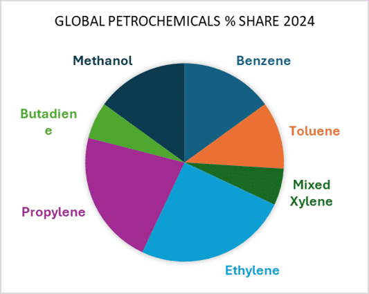 The basic petrochemical market can be grouped into four main categories: Olefins, Aromatics, Methanol, and Feedstocks.