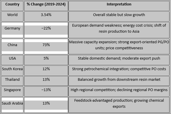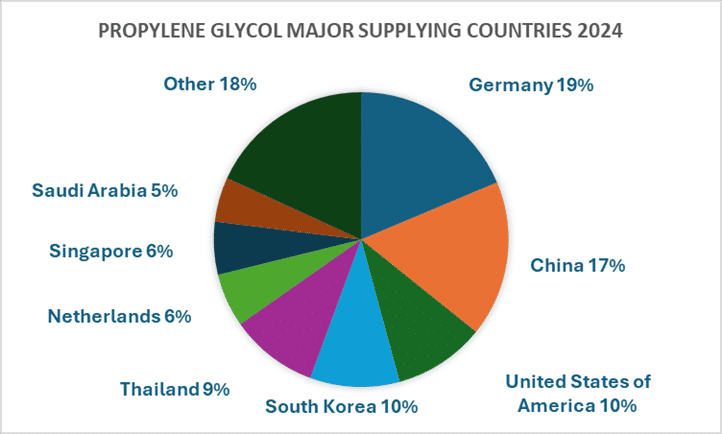 Propylene Glycol (PG) prices in key importing markets like India softened from $1.03–1.04 /kg to $0.92–0.94 /kg (2025) in line with: