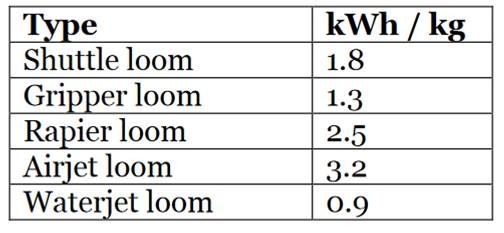 Table1. Power consumption of different looms