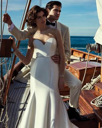 Alluring and intriguing, glitter and shine are here to stay for wedding fabrics. The runways showcase subtle glitter that is not over the top yet defines chic classiness. The dreamy look is accomplished by way of embellished surfaces using tone on tone beads, sequins, pearl trims and silver crystal embroidery on sheer layers of fabric. The beauty lies in the detail; intricately textured fabrics add elegance to a variety of silhouettes, from a flowing gown, short dress to a jumpsuit.