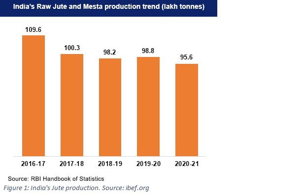 Due to the significant local market demand, 90 per cent of the total production of jute is often used domestically. In FY22, India’s production of jute goods stood at 1,080 lakh tonnes.